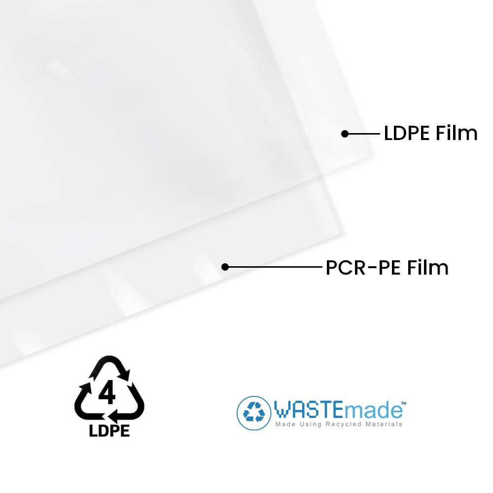 Our Wastemade™ RE:MONO laminate is made from up to 50%(this can be customized) post-consumer recycled (PCR) material. The carbon footprint is approximately half that of conventional plastic made from virgin fossil fuels. Safe and certified for food contact.